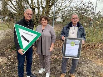 von links nach rechts: Bürgermeister Karl Dieter Wünstel, Anette Kloos (Kreisbeigeordnete für Wirtschaft und Tourismus), Gerhard Wagenblatt (ehrenamtlicher Wegewart)