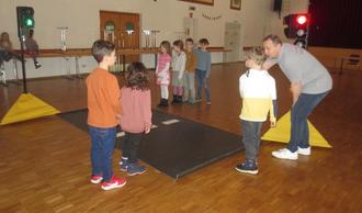 Die Kinder lernten das Einmaleins der Verkehrsregeln kennen. Herr Kiefer und sein Rabe ADACUS von der ADAC Stiftung zeigten den Wackelzähnen das richtige Verhalten beim Überqueren der Straße an Zebrastreifen und an Ampeln. Spielerisch konnten sie auch gleich das sichere Verhalten im Straßenverkehr üben.