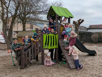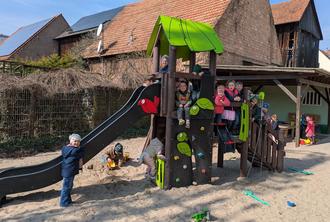Lange suchten wir nach einem Spielhaus, was den neuesten Regelungen und Vorgaben des Unfallschutzes entspricht, bis dann endlich auch eines gefunden wurde. In der Winterzeit wurde das alte Spielhaus abgebaut und somit Platz für das neue geschaffen, welches nach der Lieferung direkt eingebaut werden konnte und vielfältige Möglichkeiten zum Klettern, hangeln, rutschen, „sandeln“ und spielen bietet.