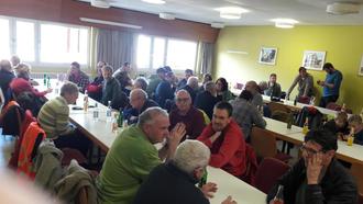 haben, zu einem gemeinsamen Imbiss im Mehrzwecksaal des Dorfgemeinschaftshauses eingeladen.