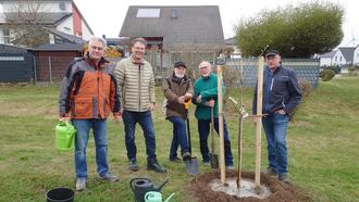 Am Samstag, den 28. März, trafen sich die Mitglieder bei schönem Wetter zu einer geselligen Pflanzaktion, um gemeinsam einen Mirabellenbaum zu setzen.
