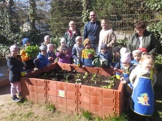 Bereits im vierten Jahr existiert in unserem Kindergarten das Hochbeet der Aktion „Gemüsebeete für Kids“ der Edeka Stiftung.