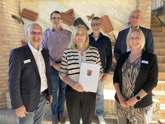 Vorne von links nach rechts: Bürgermeister Karl Dieter Wünstel, Silvia Lorenz, Sibylle Glittenberg (Personalreferentin), hinten von links nach rechts: Rolf Güssow (Personalratsvorsitzender), Tobias Völkel (Bauabteilungsleiter), Thomas Merz (Büroleiter)