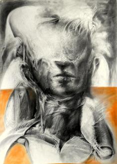Andreas Hella / Von den Wirrungen einer Idee / 100x70 / Grafit, Pigmente, Karton / 2024
