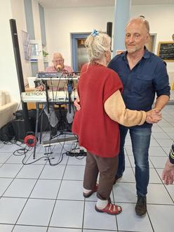Bei stimmungsvoller Musik wurde geschunkelt, getanzt und mitgesungen. Die festlich dekorierte Cafeteria war bis auf den letzten Platz gefüllt, und die Gäste freuten sich über die liebevoll zubereitete Erdbeerbowle, die an diesem warmen Frühlingstag für besondere Erfrischung sorgte.