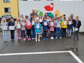 Dank eines gut meinenden Wettergottes sprangen, warfen und rannten die Kinder um die Wette. Alle gaben ihr Bestes und so wurde schließlich jeder zu seinem ganz persönlichen Erfolg mit einer Urkunde geehrt. Die besten Mädchen und Jungen jeder Klassenstufe wurden darüber hinaus auch noch mit einer Medaille belohnt.