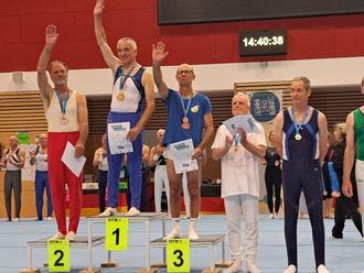 Auch unsere erfahrensten Turner konnten sich zu den Deutschen Seniorenmeisterschaften qualifizieren. Besonders herausragend war die Leistung von Gerhard Metz, der zum dritten Mal den Titel „Deutscher Seniorenmeister AK 65–69“ gewann – nach 2021 und 2023 nun erneut! Mit 46,55 Punkten ließ er die Konkurrenz hinter sich.