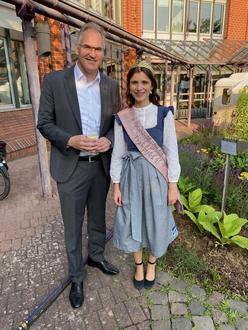 Aufgrund der persönlichen Einladung von Landrat Seefeldt besuchte die 8. Hatzenbühler Tabakkönigin Franziska I. zusammen mit anderen SÜW-Hoheiten die Feier zum 56. Geburtstag des Landkreises SÜW vor dem Gelände des Kreishauses in Landau.