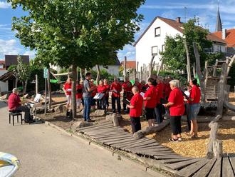 Die Sängerinnen und Sänger vom Gesangverein Lyra Hatzenbühl möchten Sie alle zum „Schulhof-Konzert“