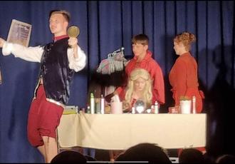 In urkomischen Dialogen wurde man Zeuge, wie Alisha Schardt als Julia mehr als einmal vor einem Nervenzusammenbruch bewahrt wurde, Norman Neumer als Romeo seinem Spiegelbild verfangen war, Emily Taglieber (nicht nur als Tybalt) einer Rolle nach der nächsten nachhetzte, während Patricia Thiele als Amme der Zeit nachweinte, als sie selbst noch die Julia gespielt hatte. Nicht zu vergessen, dass es Mia Verlohner als Regisseurin sowohl an Geld als auch an Personal mangelte, sodass Aaron (nun auch als Mercutio, später als Julia) in die Bresche springen durfte, äh, musste. Da war es wenig hilfreich, dass Annika Frey als Fr. Müller und Samantha Stephany als Hr. Asche dem Backstagebereich einen unerwarteten Besuch abstatteten. Einzig Naomi Müller als die Gräfin schien nichts aus der Ruhe zu bringen.