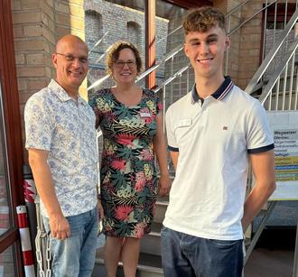Bereits mit 18 Jahren weiß Michael Ilg ganz genau, was er später werden möchte: Beamter. Dafür hat sich der Rülzheimer, der die ersten acht Jahre seines Lebens in Österreich aufwuchs, bei der Verbandsgemeinde Jockgrim beworben und wurde heute, am 01. Juli, mit offenen Armen von Bürgermeister Karl Dieter Wünstel empfangen. Den gesamten Juli wird Michael Ilg die „Einführung in die Verwaltungspraxis“ im Fachbereich I – Zentrale Dienste der Verbandsgemeindeverwaltung absolvieren. Ab August beginnt dann das Studium an der Hochschule für öffentliche Verwaltung in Mayen. Erst im April 2026 kommt er zur nächsten Präsenzphase in die Verbandsgemeindeverwaltung zurück: „Meine Wahl ist bewusst auf ein duales Studium gefallen, da mir die Verzahnung zwischen Theorie und Praxis sehr gefällt. Ich hoffe, das Gelernte bald in der Praxis umsetzen zu können. Besonders freue ich mich, mit Jockgrim eine Gemeinde in meiner Region gefunden zu haben, in die ich mich einbringen kann.“ Bürgermeister Wünstel freute sich sehr über den neuen Inspektorenanwärter, davon gab es bisher nicht viele in der Verbandsgemeindeverwaltung Jockgrim. Umso feierlicher wurde Michael Ilg von Bürgermeister Wünstel vereidigt und damit offiziell in den Kreis der Verwaltungsfamilie aufgenommen.