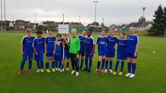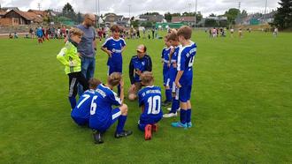Die Mannschaft Frankreich, die Hatzenbühler Jungenmannschaft, galt bei der Turnierleitung um Werner Schmalz als der Geheimfavorit. Einem guten 0:0 gegen starke Rheinzaberner folgte ein leistungsgerechtes 0:0 gegen den eigentlichen Favoriten aus Jockgrim. Gegen die Neupotzer Jungenmannschaft gab es dann ein sehr überzeugendes 5:0, so dass man nach der Vorrunde mit fünf Punkten als Tabellenzweiter ins Finale gegen die körperlich überlegenen Jungs aus Jockgrim einzog. In diesem Spiel bestimmten die Blauen das Spielgeschehen, man brillierte mit wunderbaren Kurzpassspiel, nur der Abschluss sollte nicht gelingen. Am Ende stand es abermals 0:0 für die spielstarken les Bleus, die hervorragend von ihrem Trainergespann Martin Nauerth und Roland Werling durch das Turnier begleitet wurden. Das Siebenmeterschießen musste schließlich die Entscheidung bringen. Jockgrim alias England schoss die ersten drei Siebenmeter sehr sicher, aber auch die Franzosen trafen gekonnt. Den dritten Schuss der Hatzenbühler konnte der Goali der Jockgrimer überragend halten, eine Vorentscheidung schien gefallen. Johannes, der Torwart der Blauen, hielt dann aber zweimal überragend und so musste Tim Lang den letzten Siebenmeter einfach nur reinmachen. Leicht gesagt, aber sehr schwer umzusetzen, die Nervenanspannung war spürbar. Die Eltern und Fans der Hatzen-bühler Truppe hielten den Atem an. Der Drittklässler konnte sich aber unglaublich gut fokussieren und netzte ohne mit der Wimper zu zucken rechts halbhoch ein. Die Anhängerschaft der Franzosen stürmte das Feld und unter Jubelgeschrei bekamen die Jungs aus Hatzenbühl den wunderbaren Siegerpokal überreicht. Ab sofort darf man sich Weltmeister der Verbandsgemeinde Jockgrim nennen.
