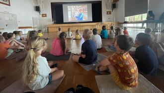 An einem Vormittag erwartete uns Hubert Werling vom Tabakfilmstudio Hatzenbühl im Bürgerhaus. Dort konnten wir uns mit den älteren Kindern den Film „Vum Zeilemächer bis zum Bischelgaarn“ anschauen. Der Film zeigt ein ganzes Tabakjahr – angefangen von der Saat über das Vorbereiten der Felder, das Pflanzen, Brechen, Einlesen und Aufhängen, Trocknen, Büscheln bis hin zum Abwiegen. Hierbei erfuhren wir, wie lange ein Tabakjahr dauert und wieviel Mühe und Anstrengung die Arbeit mit dem Tabak früher und heute macht.