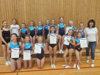 Bei sehr heißen Temperaturen in der Turnhalle zeigten die Mädchen ihr Können an den Geräten Barren, Balken, Boden und Sprung.