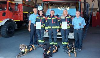 Beide Prüfungsbausteine wurden durch die Hundeführerinnen Stefanie Mohr mit ihrem Hund Sammy und Melanie Fiedler mit ihrem Hund Ava sehr gut gemeistert. Der Einheitsführer und Ausbilder Achim Marz war mit den gezeigten Leistungen sehr zufrieden und gratulierte zur bestandenen Prüfung ebenso wie der Wehrleiter und Prüfungsbeobachter Stefan Reis.