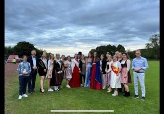 Traditionell holten kleine Zwerge, die Heidelbeerpflücker, Amelie I. am Sportplatz ab. Mit vielen Dankesworten wurde sie als Steinfelder Heidelbeerprinzessin verabschiedet.