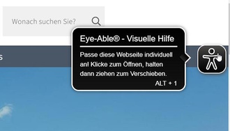 Die Funktionen von Eye-Able® lassen sich unkompliziert über ein Symbol am Bildschirmrand aktivieren und jederzeit an die persönlichen Bedürfnisse anpassen. Ziel ist es, den Zugang zu digitalen Verwaltungsinformationen möglichst barrierearm zu gestalten und allen Bürgerinnen und Bürgern eine gleichberechtigte Nutzung zu ermöglichen.