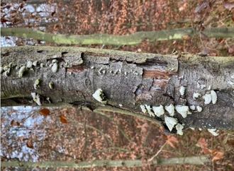 Sekundärer Pilzbefall an hitzegeschädigter Rinde