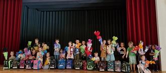 Im Juli veranstalteten wir eine Schulranzenparade: Alle Kinder versammelten sich im Bürgerhaus. Unter großem Applaus der Kita-Kinder, Erzieher, vieler Eltern und Großeltern sowie einiger Schulkinder mit ihren Lehrern durfte sich jeder Wackelzahn beim Gang über den Laufsteg zeigen und seinen Schulranzen vorführen. Währenddessen wurden die Wackelzähne mit viel lobenden Worten präsentiert. Am Ende des Laufs bekam jede/r noch eine gebastelte Schultüte mit Inhalt überreicht.