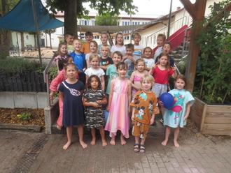 Und gerade mal zwei Tage später fand am späten Nachmittag bis in die Abendstunden hinein unsere große Wackelzahn-Abschiedsparty statt. Wir starteten mit einem Sektempfang, frischem Obst und Knabbereien. Danach begann eine verrückte Schlacht mit Wasserbombenwerfen und wilden Spielen. Die Wackelzähne genossen es sichtlich, dass sie den kompletten Spielhof für sich alleine nutzen konnten. Es wurde gespielt, gebastelt und getanzt. Abends gab es dann noch Fanta und wir aßen Unmengen Pizza und Eis, bevor die Party leider viel zu schnell vorbei war und die Kinder abgeholt wurden.