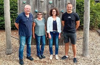 v.l. Einrichtungsleiter Bernd Stöffler, Kornelia Hartl, Ortsbürgermeisterin Sabine Baumann und stellvertretendem Personalratsvorsitzendem Julian Paul