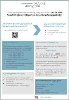 Die Verbandsgemeindeverwaltung Jockgrim sucht zum 01.08.2025