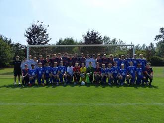 Dementsprechend war am vergangenen Samstag zum alljährlichen Fußballtag in Steinweiler ganz schön was los. Wir starteten am Vormittag mit einer Trainingseinheit, an der 36 Spieler teilnahmen. Anschließend versorgten Valentina Menella und Tina Schneider die hungrige Meute mit Mittagessen, danach stand das Fotoshooting auf dem Programm. Am Nachmittag durften beide Teams dann im Wettkampfmodus und bei brütender Hitze zeigen, was sie in den letzten Wochen gelernt haben. Den Anfang machte die C-Jugend gegen die SG aus Venningen/Kirrweiler. Durch Tore von Marco (2), Colin (2), Nico (2) und Joshua siegte unsere Elf souverän mit 7:1.