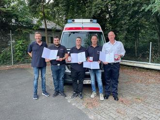 Als Dank und Anerkennung für die im Malteser Hilfsdienst geleisteten treuen Dienste wurden geehrt: v.l.n.r.: Hans Peter Messinger, Daniel Trauth, Patrick Trauth, Christian Trauth und Rüdiger Hock