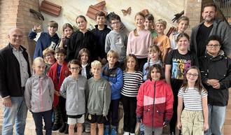 Am Mittwoch, den 10. September begrüßte Bürgermeister Karl Dieter Wünstel die Klasse 4d der Lina-Sommer-Grundschule Jockgrim im Sitz der Verbandsgemeindeverwaltung. Nachdem die Schülerinnen und Schüler bereits kurz zuvor im Rathaus der Ortsgemeinde Jockgrim viele Informationen über die Verwaltungsaufgaben eines Dorfes gesammelt hatten, schlug Ortsbürgermeister German Guttenbacher vor, doch auch das Ziegeleimuseum und die Verwaltung der Verbandsgemeinde zu besuchen. Beides sei ja ebenfalls vor Ort und gäbe noch weitere Einblicke in die Historie der Gemeinde und die Arbeit einer Verwaltung. Herr Reiter, Klassenleiter der Klasse 4d, griff die Idee direkt auf, so konnte der Termin bereits zwei Wochen später stattfinden. Zuerst besuchten die 22 Schülerinnen und Schüler das Ziegeleimuseum und - wie es der Zufall wollte - war auch German Guttenbacher auf dem Weg in die Verbandsgemeindeverwaltung und begrüßte alle. Im Ziegeleimuseum gab es dann eine Führung mit Ortsbürgermeister a. D. Jörg Scherer, der als Vorsitzender des Fördervereins Ziegeleimuseum Jockgrim e.V. ein Experte für Heimatgeschichte ist. Das Falzziegelwerk Ludowici in Jockgrim - früher das größte seiner Art in Europa - verkaufte seine besonderen Ziegel viele Jahre in ganz Europa, das beeindruckte die Schülerinnen und Schüler sehr. Nach der Führung ging es weiter zu Bürgermeister Karl Dieter Wünstel in den Ratssaal der Verbandsgemeindeverwaltung. Dorthin, wo normalerweise die Vertreterinnen und Vertreter der vier Ortsgemeinden über Aufgaben und Projekte der Verbandsgemeinde entscheiden. Zunächst gab es für die Kinder Brezeln zur Verpflegung. Dann wurden dem Bürgermeister viele allgemeine Fragen nach den Aufgaben einer Verbandsgemeinde gestellt, es wurden aber auch ganz persönliche Anliegen vorgebracht. Vor allem stand der Wunsch nach einer größeren und besseren Turnhalle im Vordergrund: Die alte Turnhalle sei „einfach viel zu klein für so viele Schüler“, so die übereinstimmende Meinung aller in der Klasse 4d. Und weil es immer mehr Schülerinnen und Schüler an der Grundschule gäbe, sei auch die Erweiterung der Grundschule eine sehr gute Sache, da waren sich ebenfalls alle einig. Bürgermeister Wünstel hörte den Kindern gespannt zu und nahm die Vorschläge gerne an. Am Schluss gab es noch ein Abschlussfoto und ein großes Dankeschön, dass ihr bei uns wart!