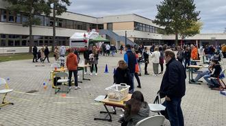 Am vergangenen Samstag, dem 24.09.2022, fand an der IGS Rheinzabern der Tag der offenen Tür statt… und der war echt gelungen! Um 10 Uhr öffnete unsere Schule ihre Pforten für Eltern, zukünftige Fünftklässler/innen und Oberstufenschüler/innen und wir boten ihnen ein ebenso abwechslungsreiches wie spannendes Programm. Ob nun die vielen Mitmachaktionen (u.a. Laubsäge-Kurs in den Werkräumen, Mikroskopieren im Bio-Saal, Kinderschminken im Altbau, römische Gerätschaften im Schulhof), verschiedenen Präsentationen (z.B. Einblicke in die Insektenwelt inkl. Verkauf von entsprechenden Hotels) oder eine der umfangreichen Führungen durch sämtliche Schulgebäude (inkl. der wiedereröffneten Turnhalle) - für jeden war etwas dabei!