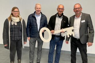 Am vergangenen Samstag fand die Übergabe der sanierten Sporthalle an der Integrierten Gesamtschule (IGS) Rheinzabern im Rahmen einer öffentlichen, gemeinsamen Sitzung des Verbandsgemeinderates und des Bauausschusses der Verbandsgemeinde Jockgrim statt. Die Anwesenden hatten Gelegenheit, sich bei einer Führung durch Bürgermeister Karl Dieter Wünstel und Stefan Rieß, Geschäftsführer des Architekturbüros DILLIG architekten, von dem Ergebnis der umfassenden Sanierungsmaßnahmen zu machen. Die ehemalige Schulturnhalle ist nun offizielle Sporthalle der Verbandsgemeinde Jockgrim. Aus diesem Grund übergab Axel Weinstein, Schulleiter der IGS Rheinzabern, symbolisch einen Schlüssel an Bürgermeister Karl Dieter Wünstel.
