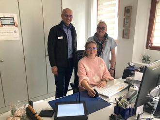 Das Bürgerbüro der Verbandsgemeinde unterstützt bei der Ersteinrichtung des behördlichen Nutzerkontos BundID. Von link nach rechts: Bürgermeister Karl Dieter Wünstel mit den beiden Teamleiterinnen im Bürgerbüro Sarah Dörzapf und Silvia Zahn.