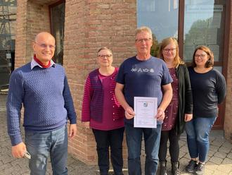 v.l.n.r.: Bürgermeister Karl Dieter Wünstel, Martina Bouché (Abteilungsleitung Bürgerservice), Richard Reiß, Nina Bannack (Teamleitung Bauabteilung), Andrea Färber (Personalabteilung)