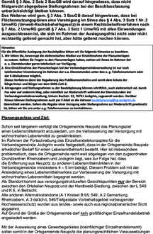 Mit der Ausweisung eines Gewerbegebietes (kleinflächiger Einzelhandelsmarkt) sollen somit in der Ortsgemeinde Neupotz die planungsrechtlichen Voraussetzungen geschaffen werden, um späteres Baurecht für die geplante Errichtung eines Einzelhandelsmarkt zu erlangen.