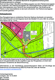 Der Verbandsgemeinderat Jockgrim hat in seiner Sitzung am 25.09.2023 den Annahme- und Freigabebeschluss für die öffentliche Auslegung des Entwurfes der 4. Teilfortschreibung des Flächennutzungsplanes für die Ausweisung einer gewerblichen Baufläche („kleinflächiger Einzelhandel“) in der Ortsgemeinde Neupotz gem. § 3 Abs. 2 BauGB gefasst.