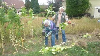 Am Samstag den 14.10.2023 um 9:00 Uhr traf sich die Arbeitsgruppe Tabakrundweg am gewohnten Startplatz am Fliederweg, um die letzte Tabakernte vorzunehmen und Tabaksamen für den Schuppen sicher zu stellen.