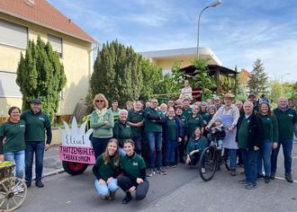 2,8 km lang war die Wegstrecke - ständiges freundliches Zuwinken und Lächeln, Verteilen der Autogrammkarten und der Flyer des Tabakrundwegs. Das und natürlich auch das Verteilen der wunderbaren Tabakblüte war auch die Aufgabe der Mitglieder der Fußgruppe vor und hinter dem Festwagen.