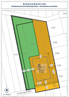 Das Plangebiet liegt am nordwestlichen Ortsrand der Gemeinde Hatzenbühl in der Frühlingstraße. Die Frühlingstraße ist eine kleine Nebenstraße, die von der Lindenstraße abgeht, welche in den Ort sowie nach Herxheim führt.