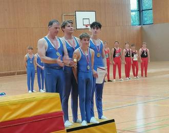 In der LK 1 (jahrgangsoffen) waren die Hatzenbühler ebenfalls am Start. Allerdings war die Mannschaft, durch den verletzungsbedingten Ausfall zweier ihrer Leistungsträger, stark geschwächt. Bester Punktesammler im Team war der 16- jährige Luis Sittinger, der besonders am Boden und Pauschenpferd erfolgreich war. Herbert Müller (mit seinen 58 Jahren der erfahrenste Turner) kam an Pauschenpferd und am Reck zum Einsatz. Ferdinand Weinacht hatte zwar einen Sturz an den Ringen, zeigte aber besonders am Boden, Sprung und Barren sehr gute Übungen. Ergänzt wurde unsere Mannschaft durch den jungen Philip Scharfenberger aus Edenkoben, der an allen sechs Geräten zum Einsatz kam und damit wesentlich zum erfolgreichen 3. Platz beitrug. Gewonnen hat erwartungsgemäß der TV Bad Bergzabern vor dem TV 03 Wörth. Herzlichen Glückwunsch zum erfolgreichen Einsatz und vielen Dank auch an die Kampfrichter Christian Johner und Manfred Werling.