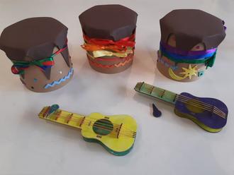 Zunächst wurden eifrig Gitarren und Trommeln gebastelt, bevor es mit voller Freude an das Backen von Noten, Trompeten und Gitarren ging.