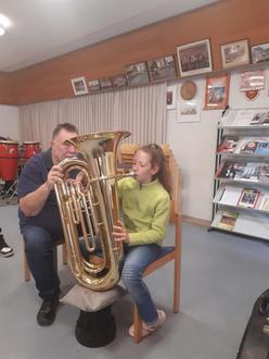 Nach dem gemeinsamen Mittagessen mussten verschiedene Bälle mit Schlagzeugstöcken durch einen Geschicklichkeitsparcours balanciert werden. In verschiedenen Quiz-Runden konnten die Kinder ihr Wissen rund um die Musik und die unterschiedlichen Instrumente unter Beweis stellen. Zum krönenden Abschluss durften alle Instrumente, die man im Musikverein erlernen kann, selbst ausprobiert werden.
