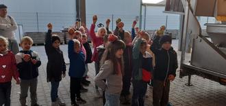 Am 4.10.23 besuchten die beiden ersten Klassen der Grundschule St. Wendelinus die Kelterei „Saftomobil“ in Hatzenbühl.