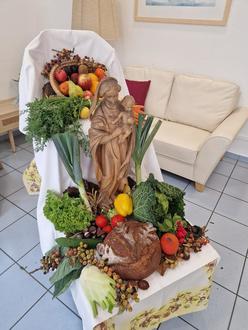Im Seniorenhaus „Lina Sommer“ in Jockgrim wurde kürzlich ein feierlicher Erntedankgottesdienst abgehalten. Die Bewohnerinnen und Bewohner versammelten sich in stimmungsvoller Atmosphäre, um gemeinsam Dank für die Ernte und die Gaben der Natur auszudrücken. Der Altar war mit herbstlichen Früchten und Blumen geschmückt und schuf eine warme, festliche Stimmung.