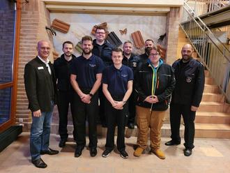 Vorne von links: Bürgermeister Karl Dieter Wünstel, Alexander Scharf (Wehrleiter), Martin Leonard, Philipp Reiß, Ingo Atze Stettin, Volker Betzer (stellv. Wehrleiter) Hinten von links: Tobias Schehr (stellv. Wehrführer Jockgrim), Jens Kiekebusch (Wehrführer Jockgrim), David Hoffmann (stellv. Wehrleiter)