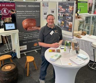 Manuel Thomas auf der Aktionsfläche mit dem Stand des Terra Sigillata Museums