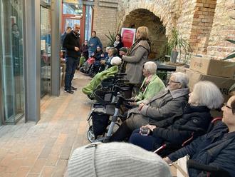 Für viele Seniorinnen und Senioren sei der Weg in die Verwaltung trotz Rollstuhl oder Gehhilfe beschwerlich. Umso so schöner sei es für ihn, dass so viele gekommen seien, freut sich Bürgermeister Karl Dieter Wünstel und bedankt sich auch bei den Betreuerinnen und Betreuern für die Begleitung. Die Resonanz auf die Wunschbaumaktion sei schon immer gut gewesen, seit der einsamen Zeit während der Corona-Pandemie sei das Bedürfnis, den alten Menschen Freude zu schenken, jedoch deutlich gestiegen. Auch dafür bedankte er sich, denn ohne die Großzügigkeit der Schenkenden könne die Aktion nicht stattfinden, so Wünstel.