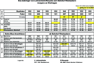 Der Umstieg von der Buslinie 552 (ab Neupotz, Mitte um 8:21 Uhr) nach Landau mit der Buslinie 555 wurde auf drei Minuten in Rheinzabern stabiler gestaltet.
