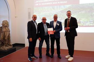 von links nach rechts: Bürgermeister Karl Dieter Wünstel, Theo Dreyer (Beigeordneter der VG Rülzheim), Bürgermeister Christian Sommer (VG Herxheim), Innenminister Michael Ebling (Ministerium des Inneren und für Sport des Landes Rheinland-Pfalz)