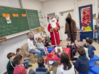 Die Kinder freuten sich über die vom Schulelternbeirat gefüllten Geschenktüten und lauschten den Ausführungen des Mannes im Nikolausgewand. Er hatte wie immer für alle Kinder und Mitarbeiter gute Worte in seinem Goldenen Buch dabei, die er in gekonnter Art und Weise spontan zu ergänzen wusste.