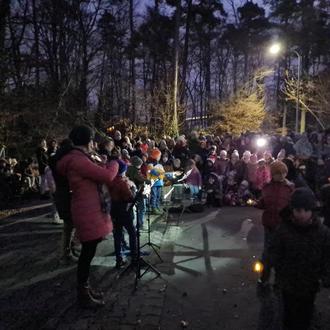 Drei Tage später traf sich die Schulgemeinschaft nach Unterrichtschluss zu unserem erstmals durchgeführten Weihnachtsspaziergang. Alle Klassen zeigten an verschiedenen Stationen auf der Wanderstrecke ihre Tänze, Gedichte oder Liedbeiträge, die sie mit ihren Musiklehrerinnen und Klassenlehrerinnen eingeübt hatten. Die wunderschönen Beiträge wurden alle mit großem Applaus bedacht. Beim Spazieren zwischen den einzelnen Aufführungen kamen die Menschen, unter denen auch viele ehemalige Schülerinnen und Schüler waren, ins Gespräch. Diese wurden dann nach dem gemeinsamen Abschlusslied an den liebevoll ausgestatteten Stehtischen fortgesetzt.